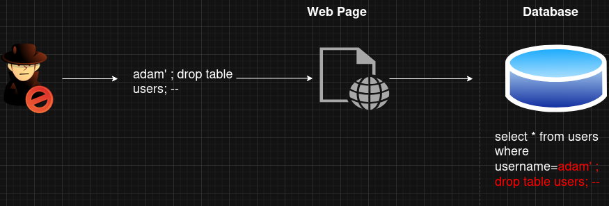 This will can potentially allow the attacker to login as the administrator and potentially and perform a lot of damage to the web application. This is possible because the web application interprets user input as code that is part of the SQL statement.